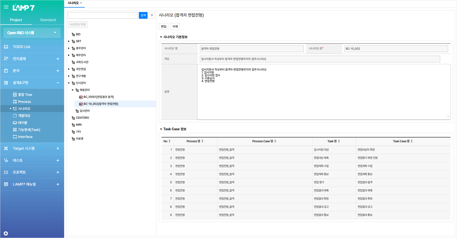 Process Case별 Task Case 및 Step을 기준으로 업무테스트 시나리오가 자동 생성됩니다.